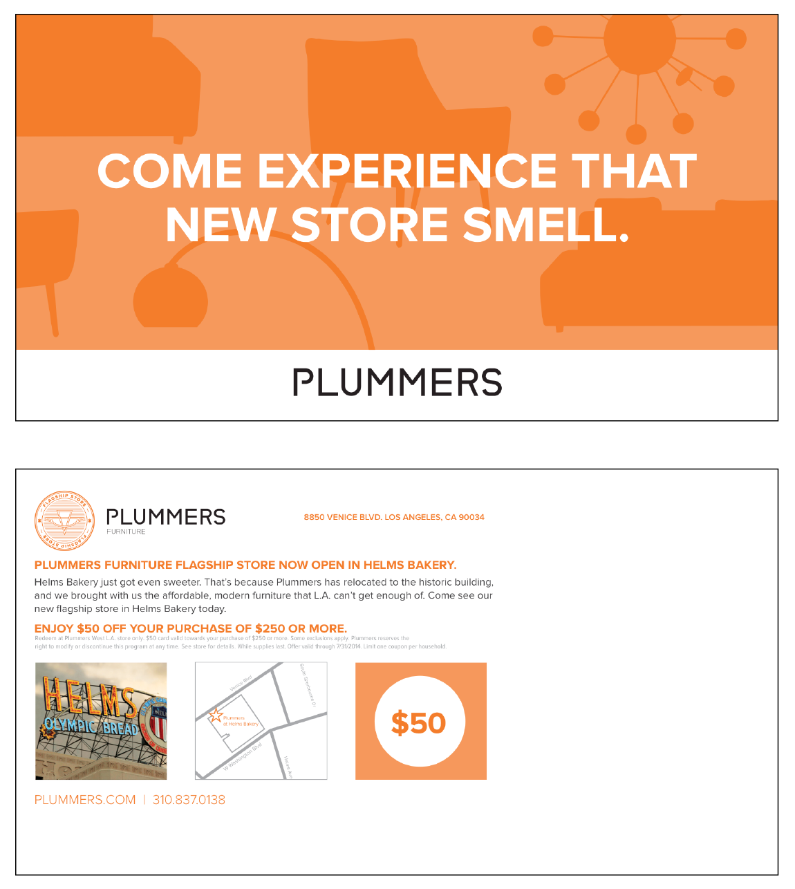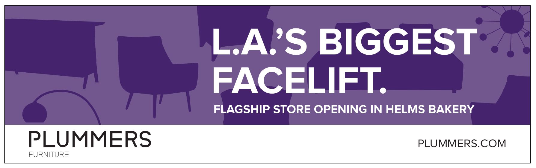 New custom logotype and branding for Plummers West L.A. Flagship Furniture store. Applied to print advertising, interior & exterior signage, billboards and digital executions.
